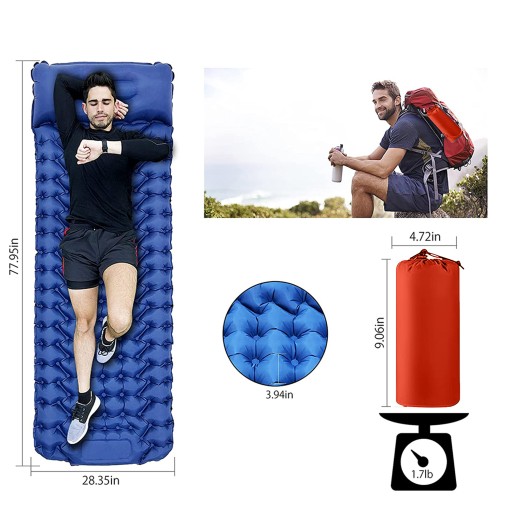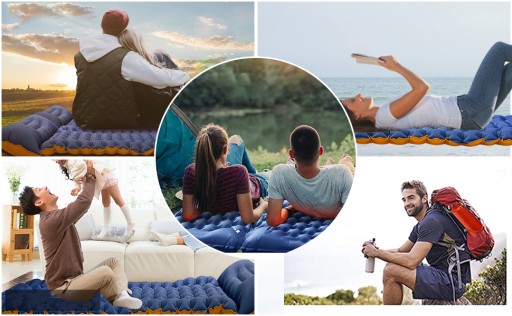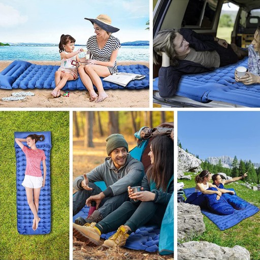 - Koniec z pompowaniem ustami, noszeniem ciężkiej pompki, teraz wystarczy tylko nadepnąć na wbudowaną pompkę powietrza znajdującą się w dolnej części maty do spania na 30 sekund, aby ją napompować, lub otworzyć nadmuchiwaną zatyczkę na poduszce, która wystarczy potrzeba 3 sekund, aby osiągnąć superszybkie opróżnienie.