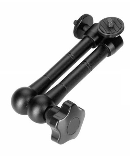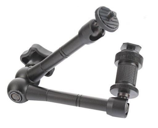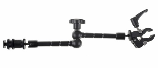 Ramię umożliwia montaż oraz ustawienie w prawie dowolnej pozycji akcesoriów o masie nieprzekraczającej 1kg. Za pomocą jednego wygodnego w użyciu pokrętła blokujemy wszystkie ruchome części ramienia.Głowice ramienia wyposażone zostały w standardowe mocowanie statywowe męskie 1/4 cala, kompatybilne z większością sprzętu fotograficznego i filmowego.