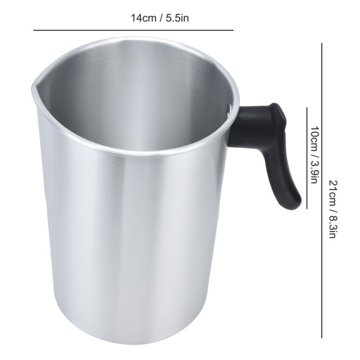 1. Tygiel woskowy o pojemności 3L, który może być używany do robienia świec w dużych ilościach i mydła, usta są zaprojektowane jako usta dywersji orła, jest bardzo wygodne do wylewania płynu ze świec.