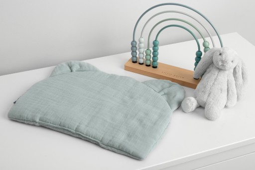 z delikatnej muśliny, a wypełnienie stanowi antyalergiczna włóknina silikonowa. Materiały te nie podrażnią delikatnej skóry dziecka. Poduszka jest płaska, idealna nawet dla noworodków.
