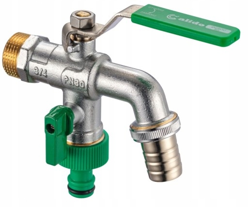 PRZEZNACZENIE: CALIDO OGRÓD BIS to seria mrozoodpornych, wodnych, kulowych zaworów czerpalnych, sterowanych ręcznie ze złączką do węża ogrodowego, dodatkowym króćcem bocznikowym do podłączenia węża ogrodowego wraz z szybkozłączem, dławikiem i dźwignią. Specjalnie opracowana konstrukcja kuli czterootworowej umożliwia lokalizację dodatkowego króćca bezpośrednio w komorze kuli zamykającej wylot główny. Niezależnie od położenia kuli zamykającej wylot główny, przepływ w kierunku króćca bocznikowego jest stale otwarty. Zamknięcie króćca jest realizowane dodatkowym zaworem. Kula czterootworowa umożliwia zastosowanie korpusu zaworu o bardziej kompaktowej budowie w stosunku do innych istniejących rozwiązań. Wszystkie zawory z serii posiadają korpus odkuty z jednego kawałka mosiądzu, co zapewnia ich doskonałą szczelność zewnętrzną i zwiększoną wytrzymałość mechaniczną w porównaniu do korpusów dwuelementowych. Szczelność wewnętrzną zapewnia specjalnie zaprojektowane uszczelnienie, które w temperaturze poniżej zera potrafi przyjąć przyrost objętości zamarzającej wody. Dodatkowo w przypadku zamarzania wody w zaworze, specjalna konstrukcja kul zamykających umożliwia odprowadzenie wzrastającej objętości wody w stronę instalacji. Tym samym nie dopuszcza się do nadmiernego wzrostu ciśnienia wewnątrz korpusu zaworu, które mogłoby uszkodzić zawór podczas temperatur zewnętrznych spadających poniżej zera st. C. Ze względu na bezpieczeństwo pozostałych elementów instalacji producent zaleca na czas mrozów opróżnienie instalacji z wody i pozostawienie zaworu w pozycji półotwartej. DANE TECHNICZNE: Ciśnienie nominalne: PN30 bar Temperatura maksymalna: 90˚C