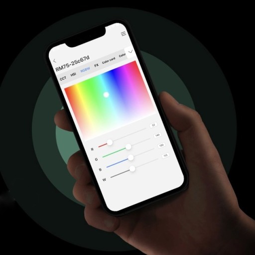 Panel LED RGB Bi-color zapewniający 36 000 kolorów światła i regulowaną temperaturę barwową w zakresie 2500-8500K.