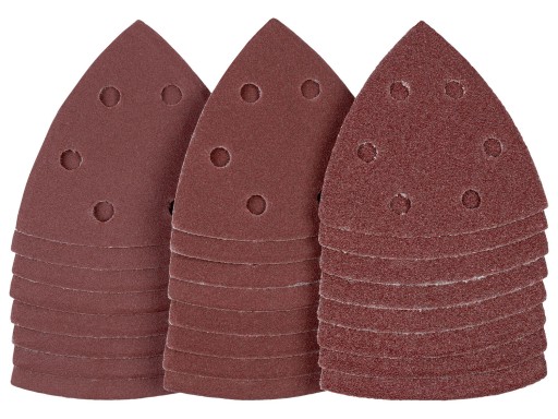 Zestaw 24 trójkątnych arkuszy papieru ściernego to idealne narzędzie do szlifowania drewna przy użyciu powszechnie stosowanych szlifierek trójkątnych z mocowaniem na rzep. Z perforacją, zestaw jest także odpowiedni do maszyn z odsysaniem pyłu, co przyczynia się do utrzymania czystości w trakcie pracy.