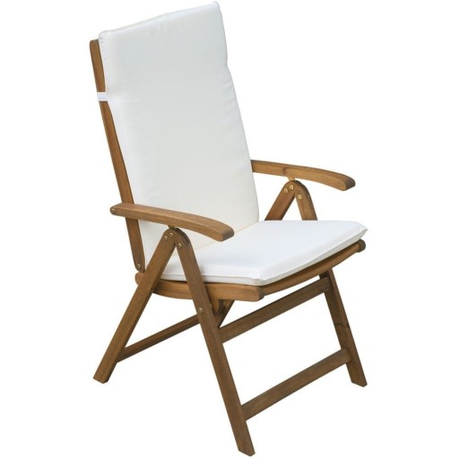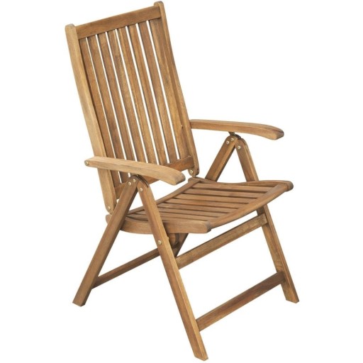 Ergonomicznie wyprofilowany rozkładany fotel o wymiarach 71 x 56 x 108 cm. Możliwość wyboru spośród 5 pozycji nachylenia oparcia. Ustawienia są regulowane poprzez przesunięcie podłokietnika. Fotel jest wyprodukowany z tropikalnego drewna akacjowego. Można z niego korzystać zarówno we wnętrzach, jak i na zewnątrz. Zestaw zawiera 2 sztuki.