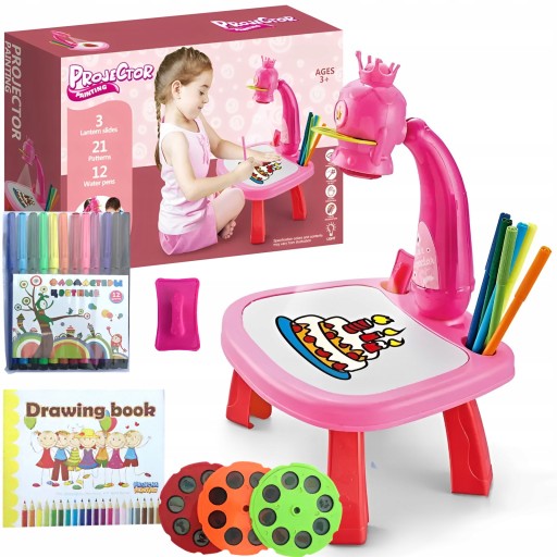 ПРОЕКТОР ДЛЯ ОБУЧЕНИЯ РИСОВАНИЮ, РОЗОВЫЙ СТОЛ, СКЕТЧБУК, ВЫКРОЙКИ, МАРКЕРЫ