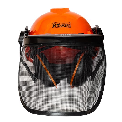 Regulowane nauszniki skutecznie chronią słuch przed nadmiernym hałasem, jaki generuje piła łańcuchowa. Kask stanowi zabezpieczenie głowy przed ewentualnymi obrażeniami, spowodowanymi przez spadające gałęzie itp. Kask marki Richmann to połączenie bardzo dobrej jakości wykonania, wygody co wpływa na komfort i bezpieczeństwo pracy. Kask jest w wyrazistym kolorze pomarańczowym, wykonany jest z mocnego i wytrzymałego tworzywa sztucznego. SNR na poziomie 23 dB.