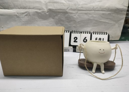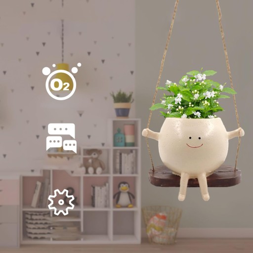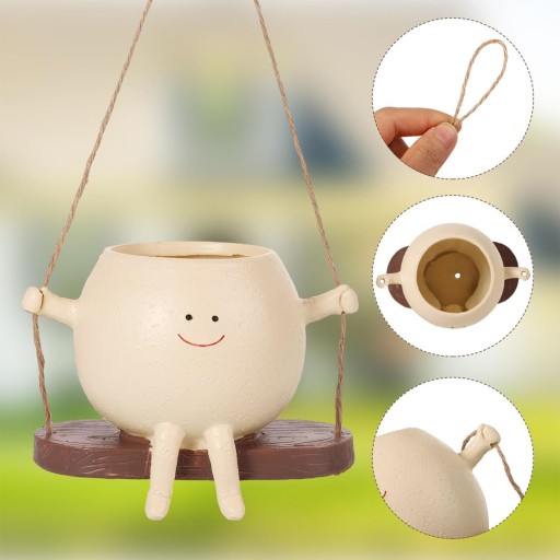 - Wisząca donica ma bardzo wyjątkowy wygląd, przypominający dziecko huśtające się na huśtawce z szerokim uśmiechem.