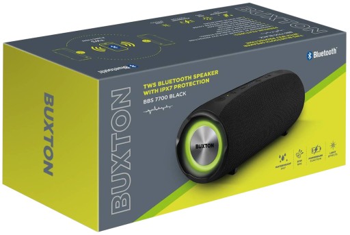Bezprzewodowy głośnik BBS7700 to zdecydowanie numer jeden wśród przenośnych głośników Buxton. Tak naprawdę nie wygląda na to – jest kompaktowy, dyskretny, naprawdę nie ma olbrzyma – waży tylko kilogram – ale to wydajność? Jak tygrys. Imponuje mocą 30W, a można go sparować z innym tygrysem tego samego typu przez TWS i otrzymujesz poważnie ogłuszające 60W mocy. To wystarczy nawet na mniejszą halę, a na zewnątrz nie będziesz miał problemów. Dwa głośniki i dwa pasywne radiatory plus technologia Power Bass plus zintegrowany akumulator to dziewięć godzin bezkompromisowego odtwarzania muzyki w odległości do 15 metrów od źródła muzyki.