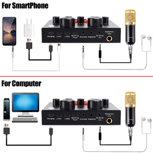 1. Aby przesyłać komputer / laptop na żywo, należy podłączyć port ładowania (nie LIVE1/LIVE2) karty dźwiękowej za pomocą kabla do ładowania.