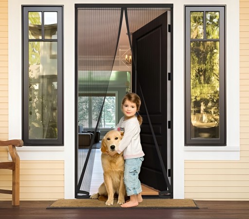 Screen Door jest bardzo łatwa w instalacji. Bez śrub, bez gwoździ i innych narzędzi. Nałożyć taśmę samoprzylepną dołączoną do ramy drzwi i nałożyć na górną stronę drzwi ekranu i gotowe. Jest zdejmowany, przenośny i zmywalny.