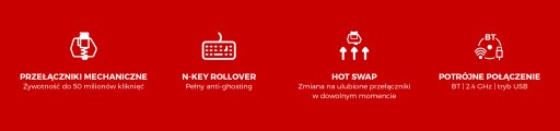 - Potrójny tryb komunikacji (2.4GHz, BT, USB)