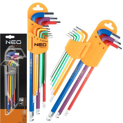 НАБОР NEO 9 шт. ШЕСТИГРАННЫЕ КЛЮЧИ С ШАРИКОМ ДЛИННЫЕ ШЕСТИГРАННЫЕ 1,5-10 мм ЦВЕТ 09-512