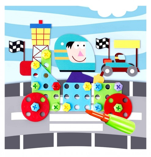 Przykręcanie kolorowych śrubek wymaga precyzji ruchów ręki - zabawka usprawni motorykę małą, pozowoli opanować chwyt pisarski oraz rozwinie umięjętności grafomotoryczne.