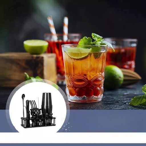 - Zestaw barmański ze stojakiem Zapewnij bezpieczeństwo, porządek i dostępność artykułów barmańskich. Oszczędza miejsce Pozbądź się bałaganu w szufladach i szafkach kuchennych.