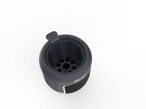 Urządzenie ma ergonomiczny kształt, optymalne rozmiary i ultranowoczesny design – ma ciemnogranatową bazę z metalicznymi detalami i ekranem dotykowym. Na nim znajdują się przyciski on/off oraz ikonki 5 automatycznych programów, tj.: szybkie podgrzewanie parą, kąpiel wodna, podgrzewanie posiłków, rozmrażanie i sterylizacja. Czas i temperaturę reguluje się dzięki przyciskom + i –. Dołączone transparentne, wysokie wieczko zapewnia cyrkulację powietrza wewnątrz podgrzewacza, dzięki czemu posiłek dłużej pozostaje ciepły. Urządzenia można również używać jako sterylizatora do butelek, słoiczków i smoczków.