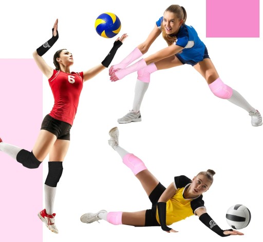 Te sportowe opaski i nakolanniki damskie zapewniają ochronę przedramion i kolan, zapewniając bezpieczeństwo podczas intensywnego meczu siatkówki lub treningu. Opaska chroni przedramię przed stłuczeniami i otarciami, a orteza kolana amortyzuje kolano przed upadkiem na kort.