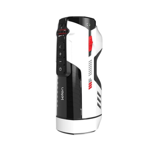 Męski masturbator Future Pro marki Leten. Zasilany kablem 220 V. 3 prędkości i 7 programów z funkcją podgrzewania, dwie osłony o różnej charakterystyce, waporyzator ze stopniowym uwalnianiem feromonu (w praktycznym formacie) i reprodukcja 3 różnych kobiecych jęków, aby stymulować słuch! Łatwe do czyszczenia dzięki funkcji automatycznego suszenia. W zestawie europejski adapter.