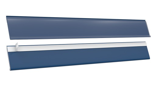 Listwy cenowe DBR-39 3000 mm długa w Kolorze NIEBIESKIM RAL 5005 -( wysokośc etykiety przedniej 39 mm - cała listwa ma 42 mm wysokości) z taśmą piankową samoprzylepną od tyłu i osłonką przeciwpyłową do frontu o długości 3000 mm pasująca do regałów różnych długości