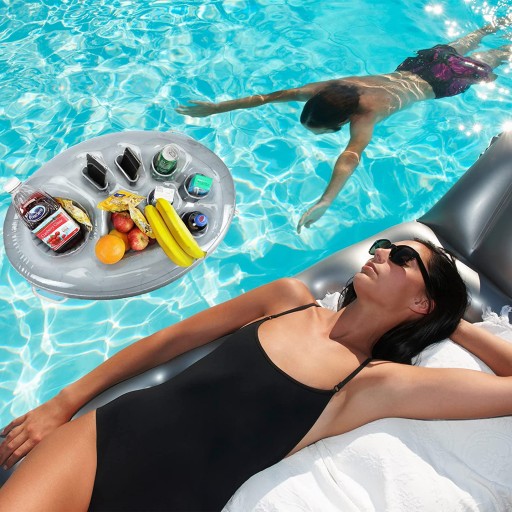 ПЛАВАЮЩИЙ СТОЛ ДЛЯ БАССЕЙНА С ДЖАКУЗИ НАДУВНОЙ БАР НАПИТКИ СЕРЕБРЯНЫЙ 70Х50СМ