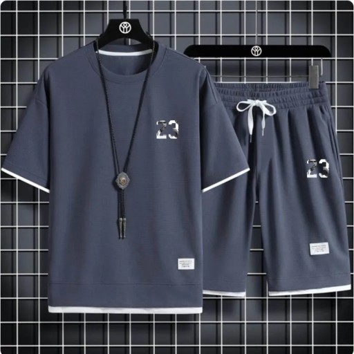 2024 Waffle Pattern 2 Piece Men Shorts Set Summer Tracksuit Men Fashion Clothing Harajuku Style Fashion Loose Fit Sweatsuit