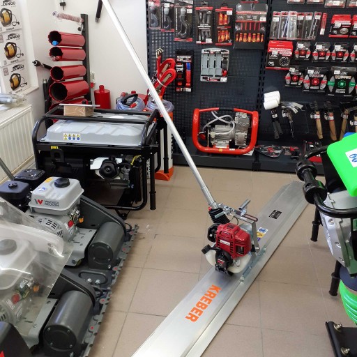 Listwa (łata) wibracyjna K-LW 2000 B marki Kreber jest przeznaczona do zagęszczania i wygładzania powierzchni betonowych. Dzięki zastosowaniu lekkich materiałów i długiej rękojeści nie wymagają szyn prowadzących. W trakcie wyrównywania i zagęszczania betonu łaty osiągają znakomite parametry oraz pozwalają otrzymać zamierzoną głębokość (wysokość) posadzki. Poprzez obrót rękojeścią możemy w każdej chwili ustawić wymagany kąt pochylenia listwy. Listwy wibracyjne produkowane są w dwóch wersjach silnikowych: elektrycznym i spalinowym, jak i w kilku szerokościach roboczych: od 500 mm do 3000 mm.