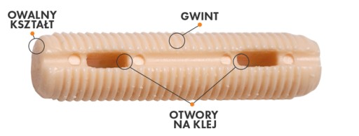 - Owalny kształt eliminuje ryzyko wybrzuszenia materiału podczas wbijania kołka.
