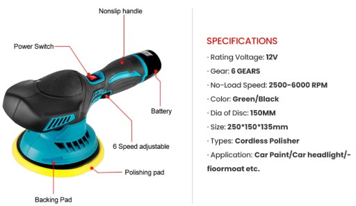 Polerka samochodowa akumulatorowa na baterie (akumulator nie jest w zestawie)