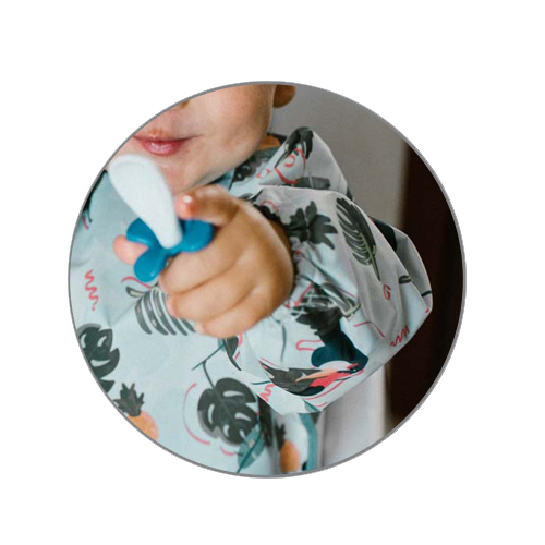 Fartuszek z rękawkami jest wodoodporny i łatwy w utrzymaniu czystości, a więc przyda się podczas nauki samodzielnego jedzenia.