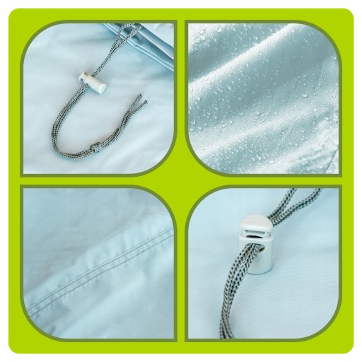 - Pokrowiec został wykonany z trwałej tkaniny oxford 210D z powłoką PU, odpornej na intensywne użytkowanie i uszkodzenia.