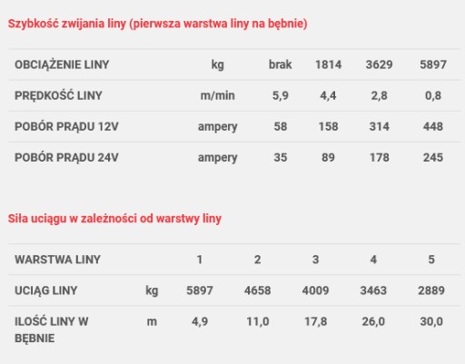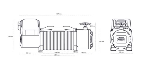 - wymiary wyciągarki (LxWxH): 537 mm x 166 mm x 228 mm.