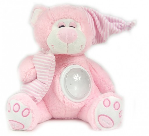 * wbudowana lampka/projektor - za jej pomocą miś rozświetli ciemności w pokoju dziecka wyświetlając