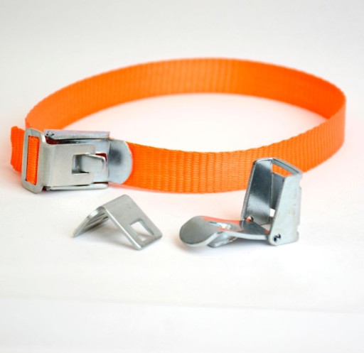 Opaska ma zamontowaną zapinkę do taśmy mocującej o szerokości 20mm. Oferowany zestaw ma dwuczęściową zapinkę i taśmę transportową dużej wytrzymałości.