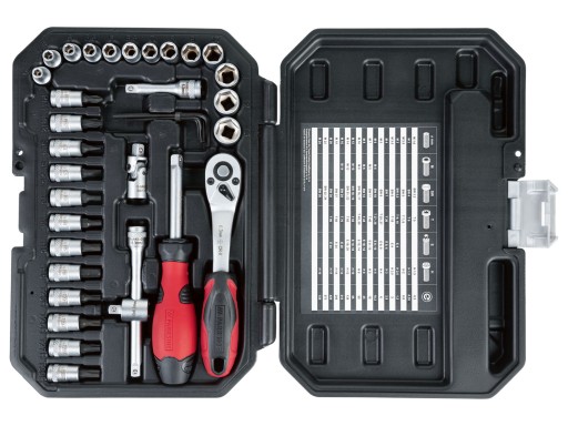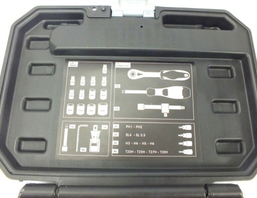 Zestaw wykonany jest w wysokiej jakości stali chrmowo — wanadowej ( CR-V ) i stali S2 z nasadkami 1/4" (6,3 mm)