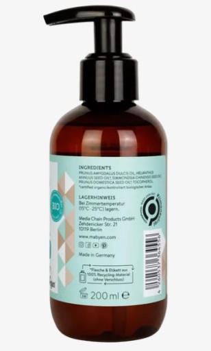 Organiczny olejek dla dzieci Mabyen Migdał z wysokiej jakości olejkiem migdałowym zapewnia kompleksową pielęgnację dziecięcej skóry już od pierwszego użycia. Delikatna formuła czystych, naturalnych olejków intensywnie nawilża i uelastycznia skórę. Jest bezzapachowy, nie zawiera syntetycznych substancji zapachowych i barwników, konserwantów oraz surowców na bazie olejów mineralnych. Zawiera tłoczone oleje z kontrolowanych upraw organicznych (współpraca z regionalną olejarnią) i posiada certyfikat ekologiczny. Zgodność ze skórą została również przetestowana dermatologicznie.