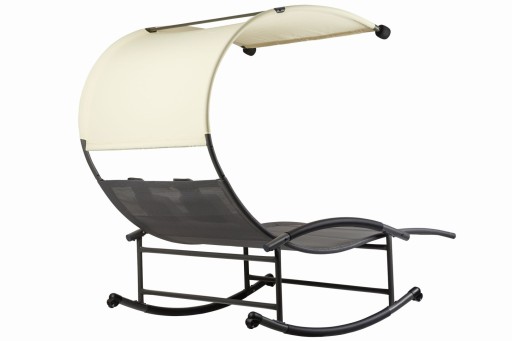 Leżak swoją stabilność i bezpieczeństwo zawdzięcza odpowiednio wyprofilowanemu stelażowi oraz płozą, które pozwalają na delikatne kołysanie. Duży daszek zapewni przyjemny cień podczas upalnych dni i ochroni nas przed promieniami UV, a lekkie bujanie dodatkowo umili nam czas na spędzony na zewnątrz z najbliższą nam osobą. Wysokiej jakości materiał z którego została wykonana powierzchnia leżaka "oddycha" i przepuszcza wodę, dzięki czemu jest odporny na warunki atmosferyczne.