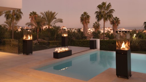 Płomień, który wiruje i załamuje się rzucając delikatne, złote światło, uczyni różnicę między statycznym, czarno-białym tarasem a żywym, ciepłym miejscem.