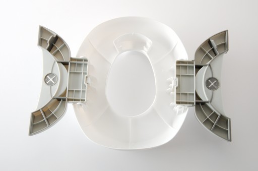 Wystarczy rozłożyć na boki nóżki nocnika, docisnąć, aż usłyszysz charakterystyczny klik i położyć na toaletę.