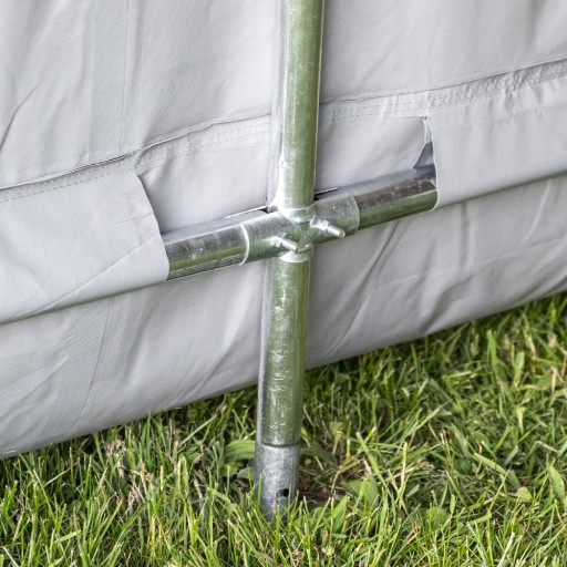 Jego konstrukcja opiera się na solidnym stelażu ze stali, co gwarantuje stabilność i wytrzymałość. Namiot jest prosty w montażu i demontażu, dzięki czemu możesz go szybko przenosić i zainstalować w dowolnym miejscu. Dodatkowo, dzięki funkcjonalnym drzwiom, masz łatwy dostęp do przechowywanych przedmiotów i pojazdu.