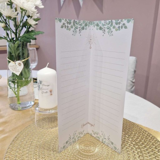 Menu jadłospis "Komunia Święta - Eukaliptus Beauty", 29,5 x 10,5 cm, 3 szt