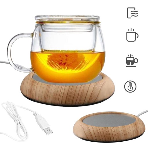 - -Podstawka wykorzystuje element grzewczy z żelem krzemionkowym o niskiej mocy, który jest bezpieczny. Maksymalna temperatura płyty może osiągnąć 80 stopni, co pozwala utrzymać herbatę w stałej temperaturze 55 stopni.