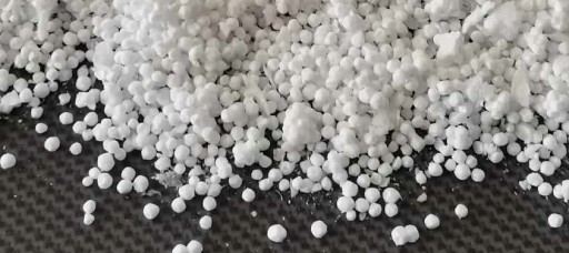 Regranulat z przemiału styropianowego i styroduru xps bez zanieczyszczeń. Jest zapakowany w worek i pudełko kartonowe.