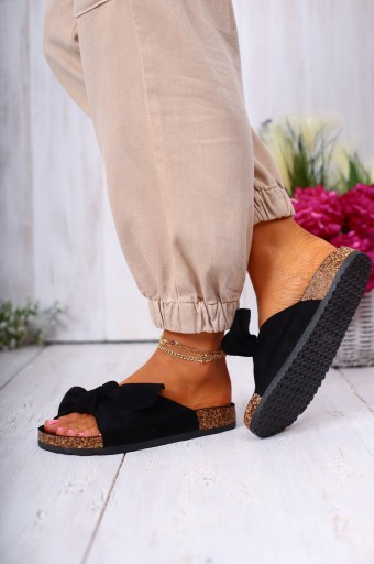 HIT KLAPKI DAMSKIE Z KOKARDĄ ZAMSZOWE MIĘKKIE
