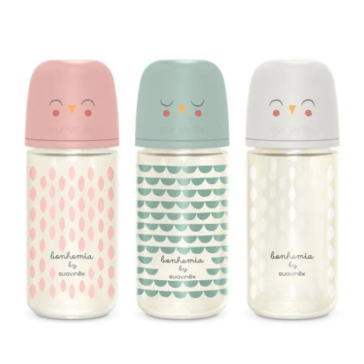 Najwyższej jakości butelka szklana z kolekcji Bonhomia, zainspirowana naturą i zachwytami nad codziennością. Butelka o pojemności 240ml wyposażona jest w smoczek SX PRO zaprojektowany z myślą o rozwoju jamy ustnej dziecka. Wskazana dla niemowląt od ich 3 miesiąca życia, smoczek pozwala na utrzymywanie języka w tej samej naturalnej pozycji, jak podczas karmienia piersią .Przewagą szklanych butelek jest fakt, iż nie pochłaniają żadnych zapachów ani smaków żywności.