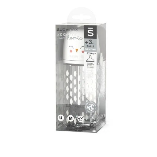 Suavinex butelka 240 ml średni przepływ Szara sowa