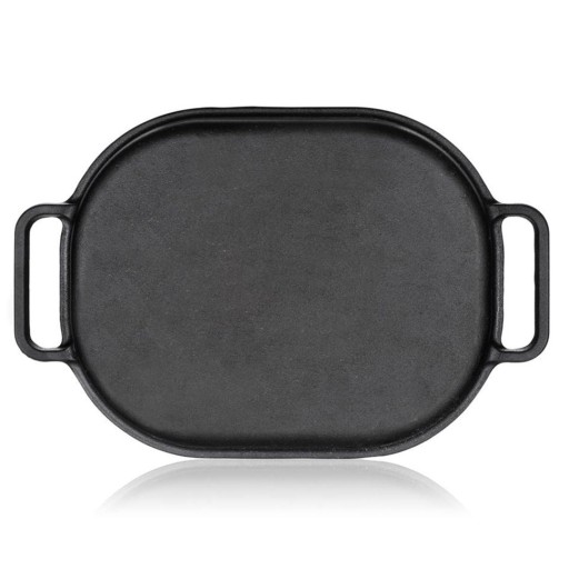 Solidny materiał, który długo utrzymuje ciepło po podgrzaniu i rozprowadza je równomiernie, pozwalając żywności piec się równomiernie, w krótszym czasie i bardziej ekonomicznie na patelni żeliwnej.