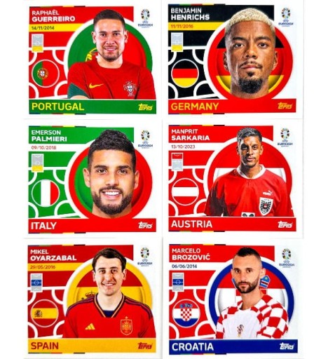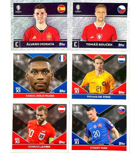 W kolekcji znajdziemy takie kategorie naklejek, jak: Top XI, Captains, Players to Watch, Nation Logos, Artists, Legendary Euro Masters.