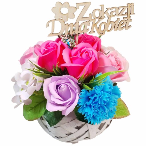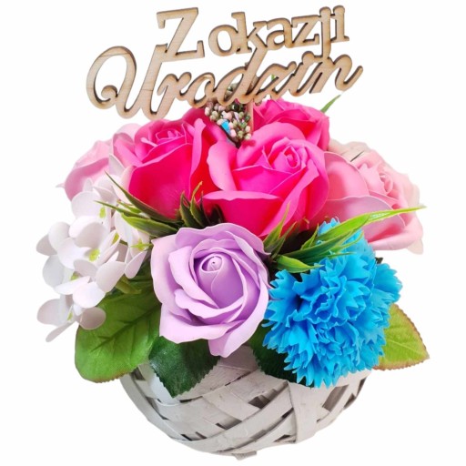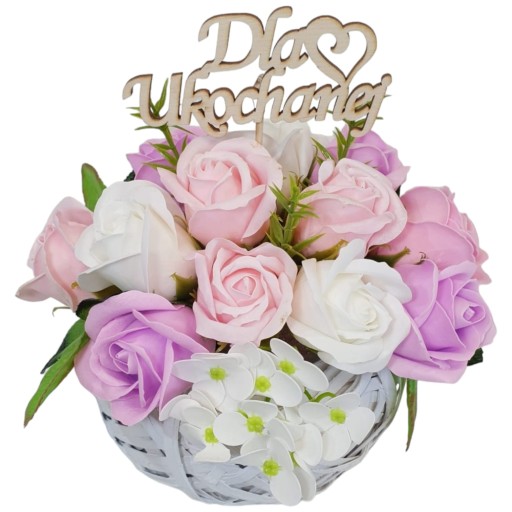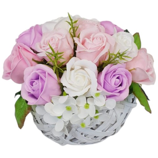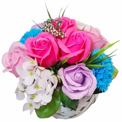 Na sprzedaż oferujemy kompozycję kwiatową - bukiet z kwiatami mydlanymi, które nie tylko udekorują wnętrze, ale również zapełnią je delikatnym i przyjemnym zapachem. Kompozycja została wykonana z wysokiej jakości materiałów, co gwarantuje trwałość i estetyczny wygląd.