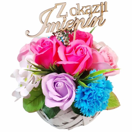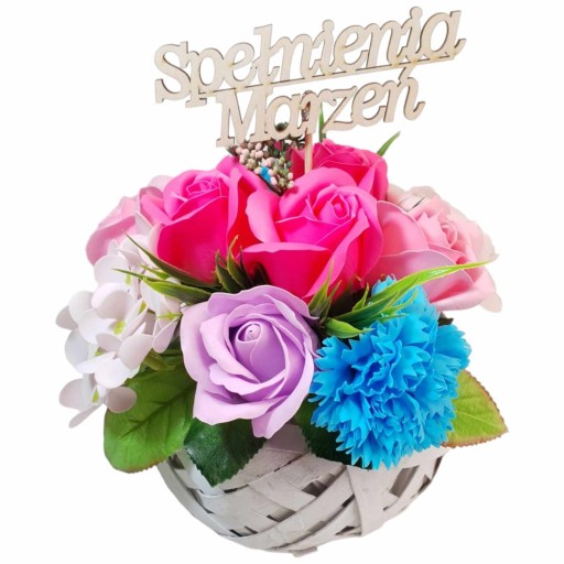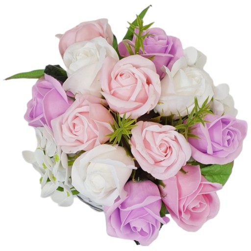 Kwiaty mydlane bukiet róże hortensje pachnące PREZENT na Dzień MAMY
