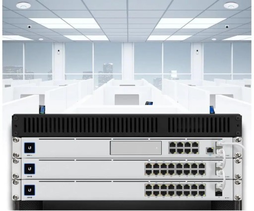 Zapewnia połączenie RJ45 Gigabit PoE Ethernet z urządzeniami oraz możliwości podłączenia gigabitowym połączeniem optycznym do sieci głównej. USW-24-POE jest wyposażony w 1,3-calowy ekran dotykowy LCM, który dostarcza informacji o stanie urządzenia.