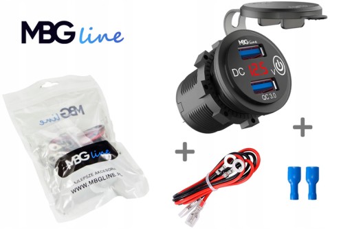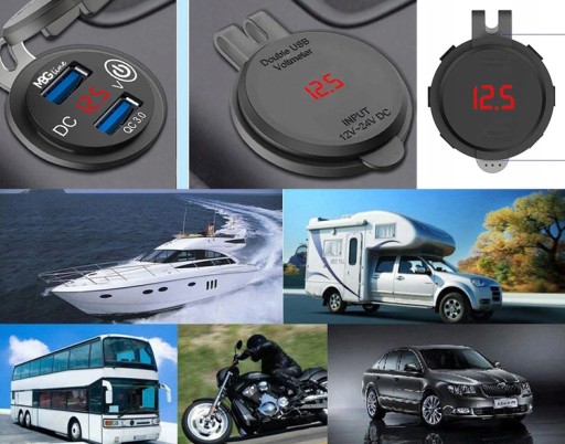 Ładowarka motocyklowa 2x QC3.0 + WOLTOMIERZ + dotykowy przycisk: